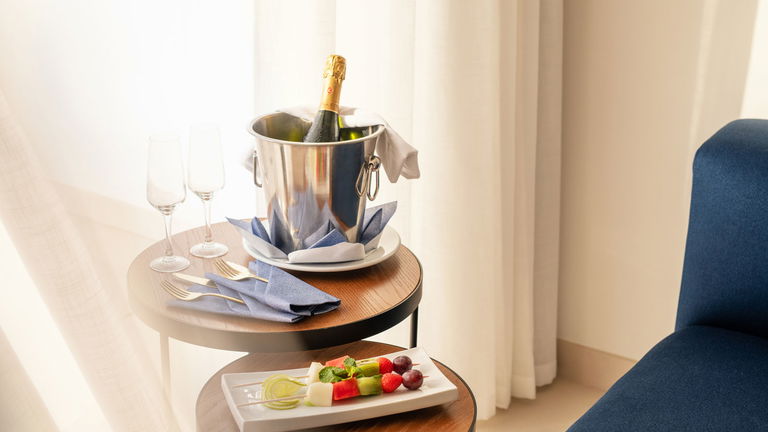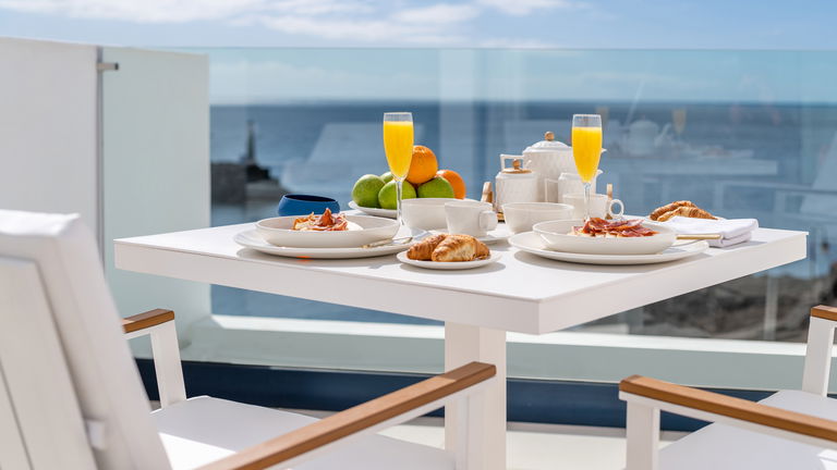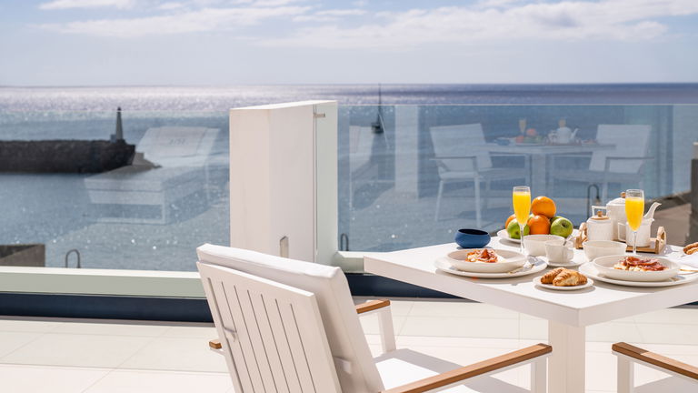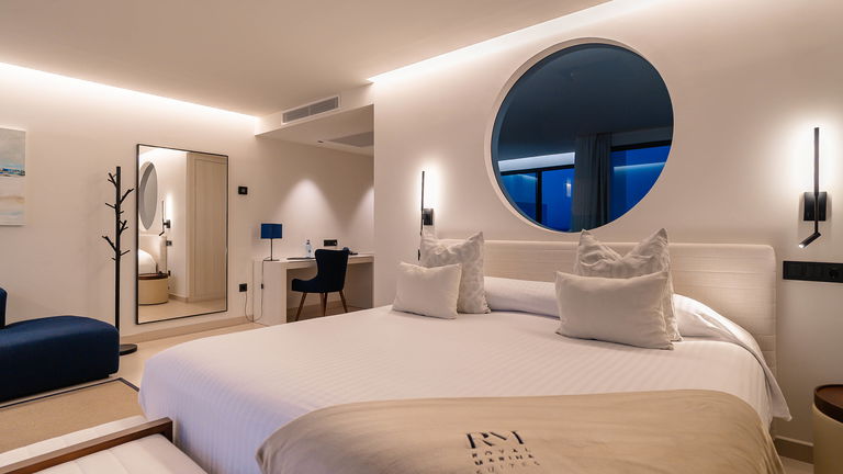 Disfruta de la mejor vista al océano Atlántico desde la magnífica terraza de la Royal Suite. Estas suites, diseñadas con un estilo moderno y limpio, destacan por la comodidad que ofrecen sus cuidados ambientes y los detalles especiales presentes en cada habitación. Con vistas panorámicas al mar, la Royal Suite es la elección perfecta para aquellos que buscan una estancia verdaderamente especial. Además, al reservar una Royal Suite, disfrutarás del exclusivo Servicio Royal, que incluye: